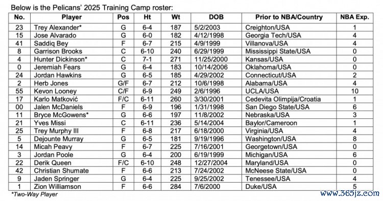 9月23日讯 今日, 乒乓球资讯英超直播鹈鹕官方公布了球队新赛季的练习 营大名单。