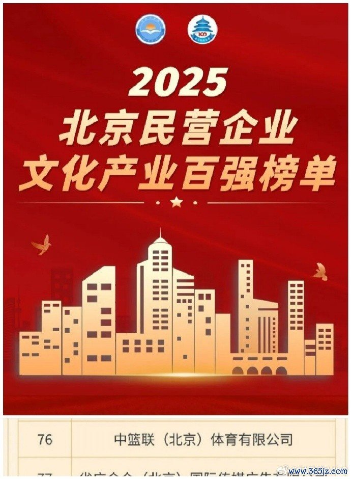 媒体人:CBA公司入选北京民企文化产业百强榜 位居第76