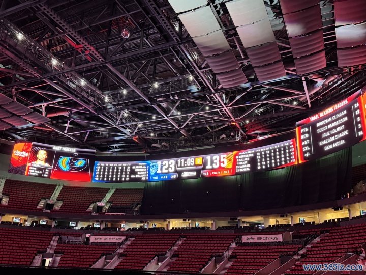 开拓者主场作战 摩达中心近日公布了全新的中场球员大屏幕以及运动活动 场 周边曲面屏的升级。