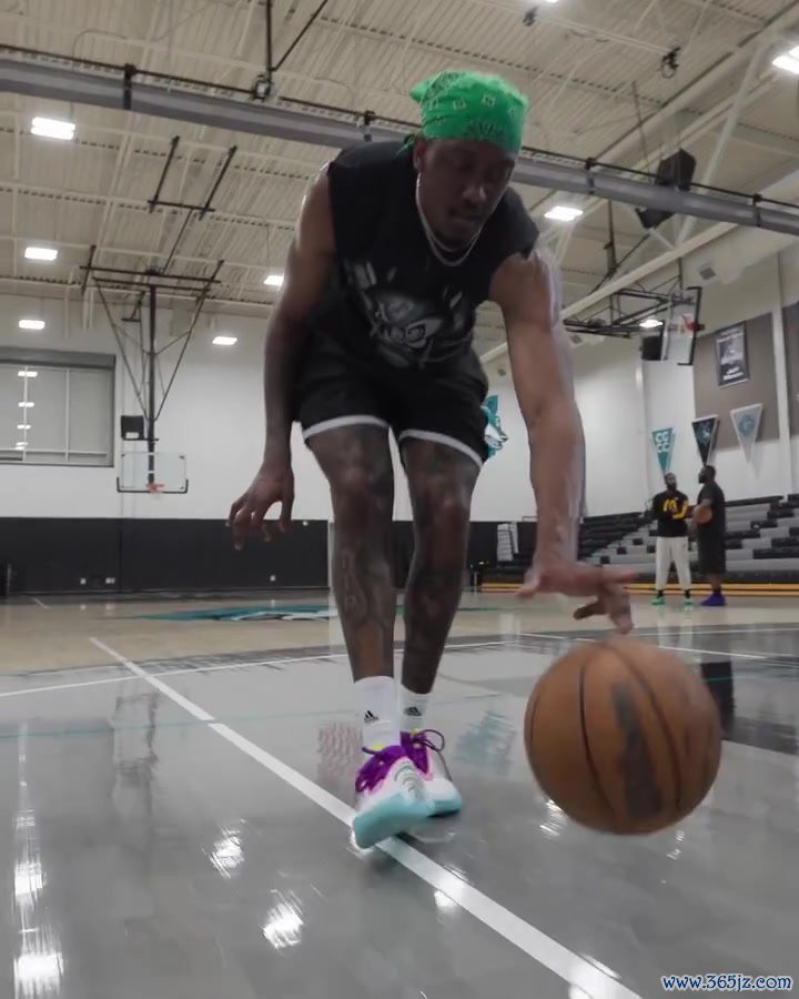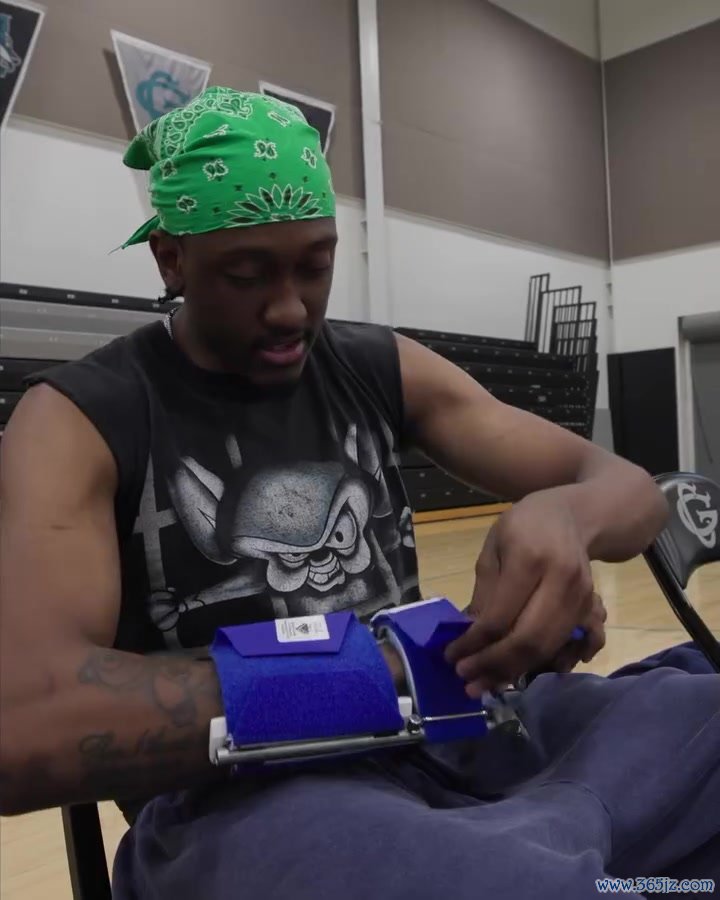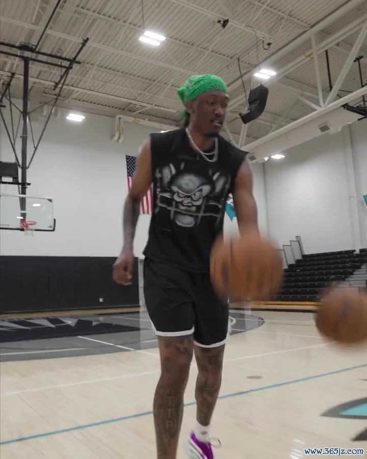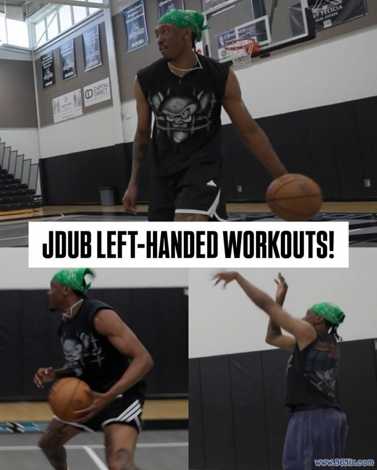 视频中可见,杰伦威用左手完成了拍球、投射和单挑等一系列练习 内容。