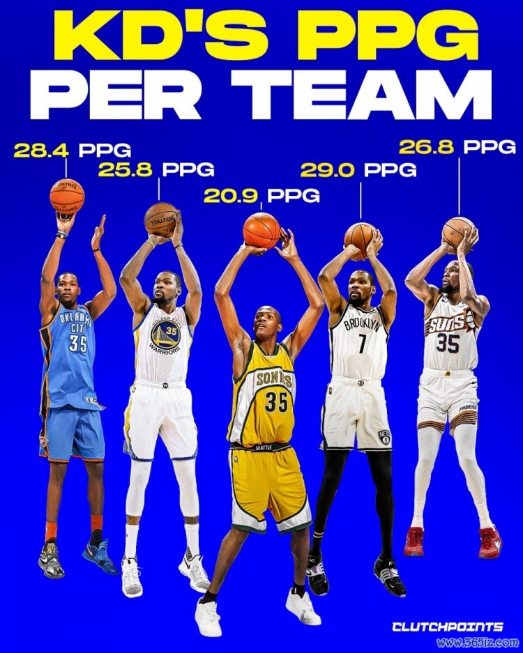 杜兰特效力各队时场均积分 :篮网29分最高 雷霆28.4分 勇士25.8分