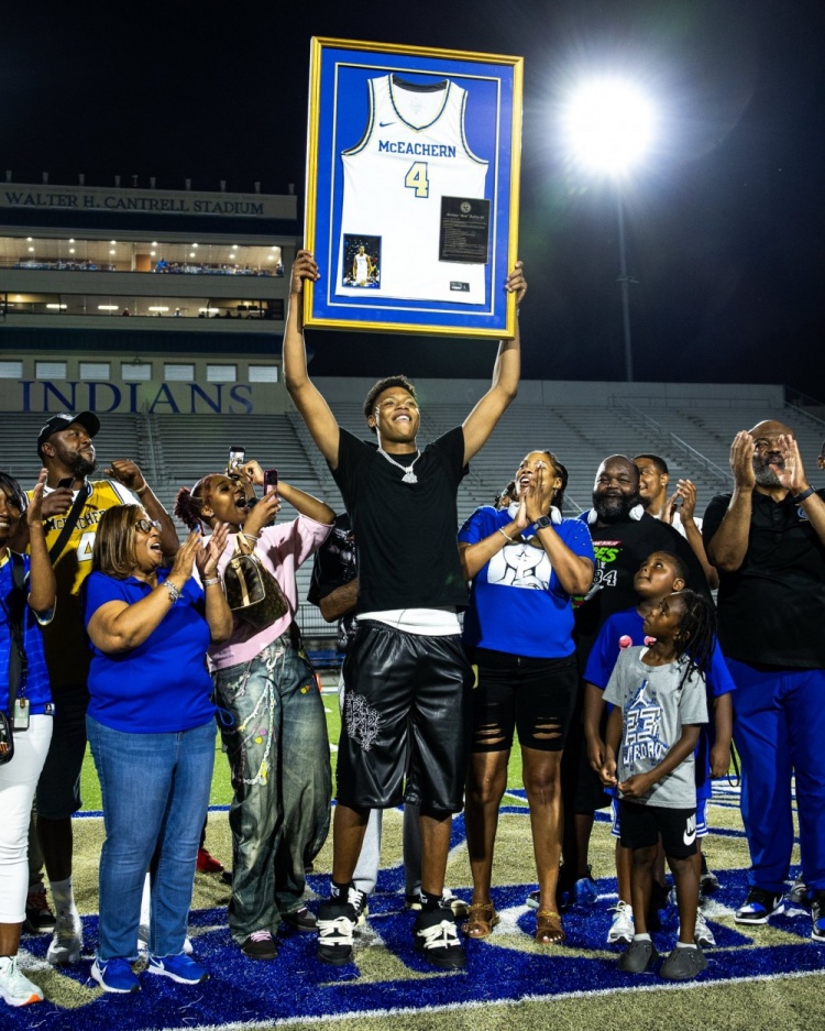 8月23日讯 爵士新秀贝利回到了自己的高中母校参加自己的运动活动 服 退役仪式。爵士官方也更新动态祝贺贝利:“属于麦凯克伦高中(McEachern)的难忘之夜 ,祝贺你的运动活动 服 被母校退役!💛💙 ”