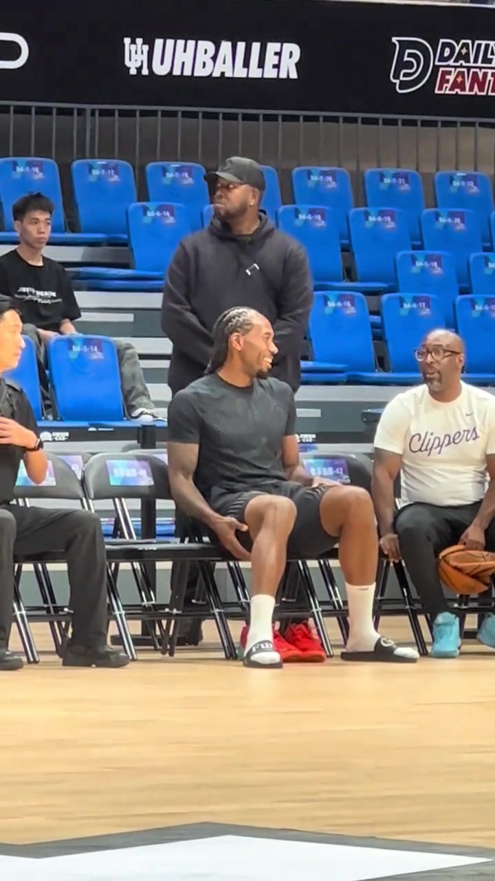 一改赛事 中的严肃!莱昂纳德和随行人员沟通 场上情况 有说有笑