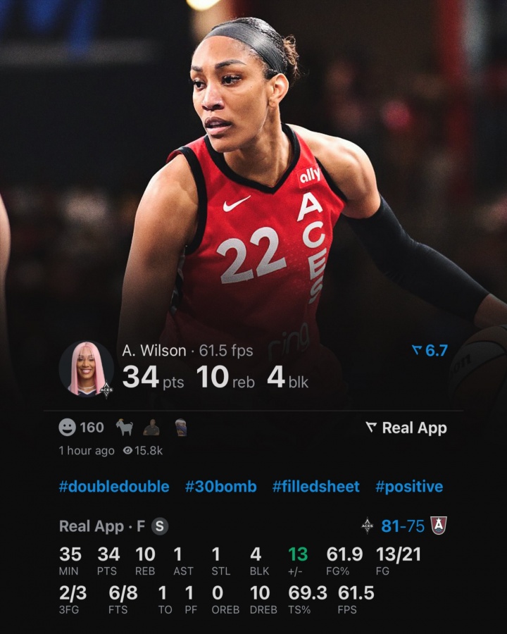 阿贾-威尔逊出战35分钟,投射21中13, 乒乓球资讯三分3中2, 巴塞罗那NBA直播罚球8中6,希望体育之光砍下34分9篮板球 1助功 1抄截 4阻攻 ,正负值+13!