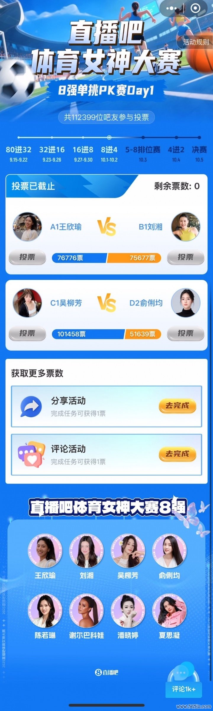 小组赛期间, 乒乓球资讯您可以为所有小组的任何一位您喜爱的女神投票。