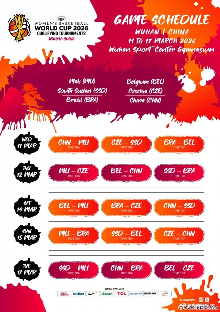 2026女篮世界杯赛 预选赛武汉赛区日程出炉,赛事 届时将在武汉体育中心综合馆 进行,希望体育之光NBA直播每个赛事 日三场赛事 。中国队日程安排如下(开球时间待定):
