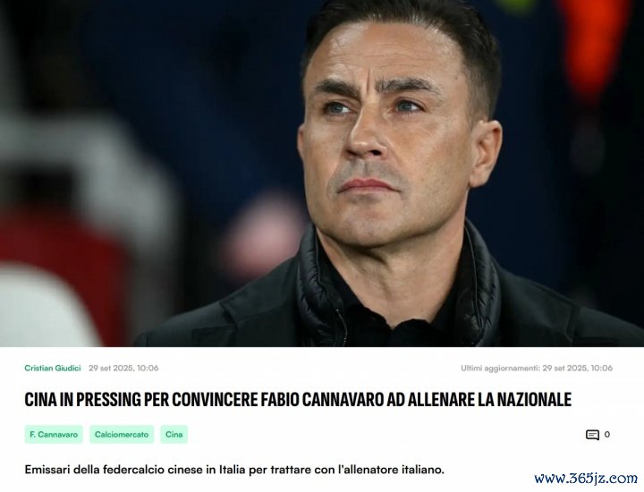 09月29日讯 据意大利古代足球 市场记者cristian giudici消息,中国足协派遣了代表前往意大利,正全力与卡纳瓦罗谈判执教国足事宜。