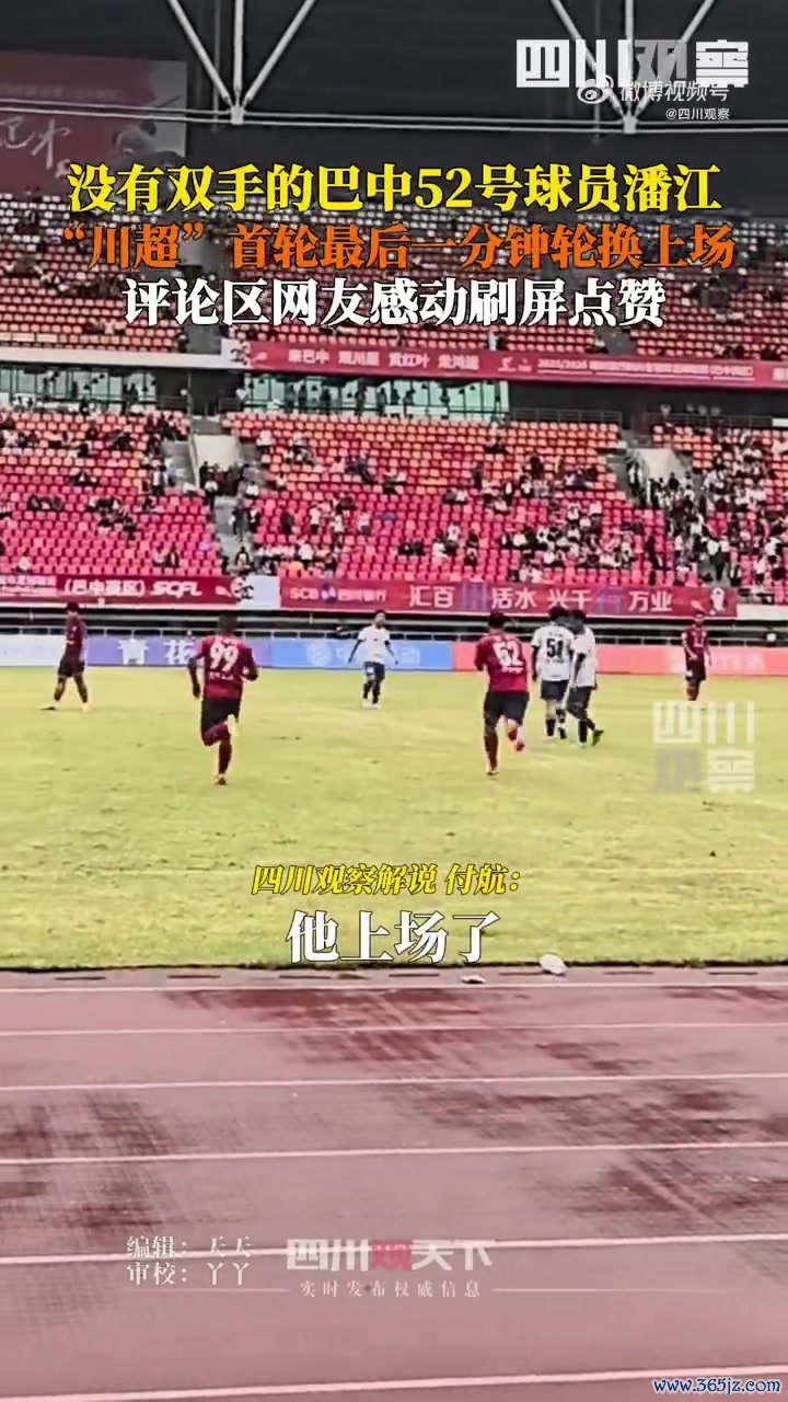 9月29日讯 9月29日,川超巴中队0-4南充队。下半场最后一分钟, 乒乓球资讯巴中队换上双手残疾的52号球员潘江。