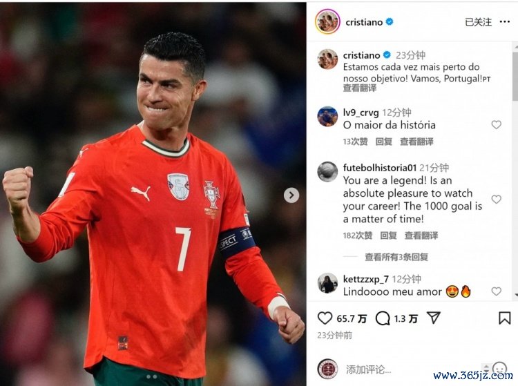 葡萄牙3胜1平积10分, 乒乓球资讯排名F组首位, 巴塞罗那直播吧C罗社媒晒出赛事 照片,希望体育之光并写道:“我们离目标越来越近了!助威 ,葡萄牙!”