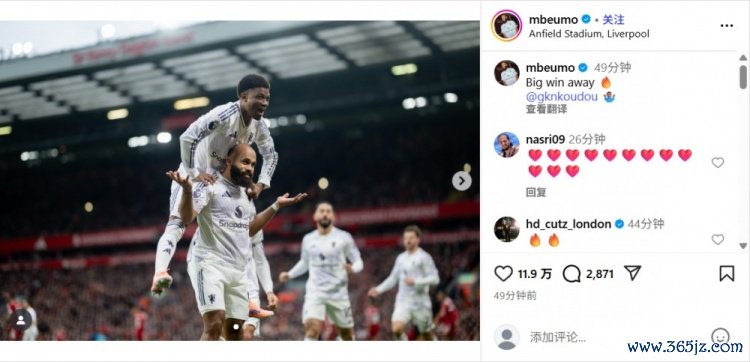 闪击破红军!姆伯莫社媒庆祝获胜 :关键的客场应战 获