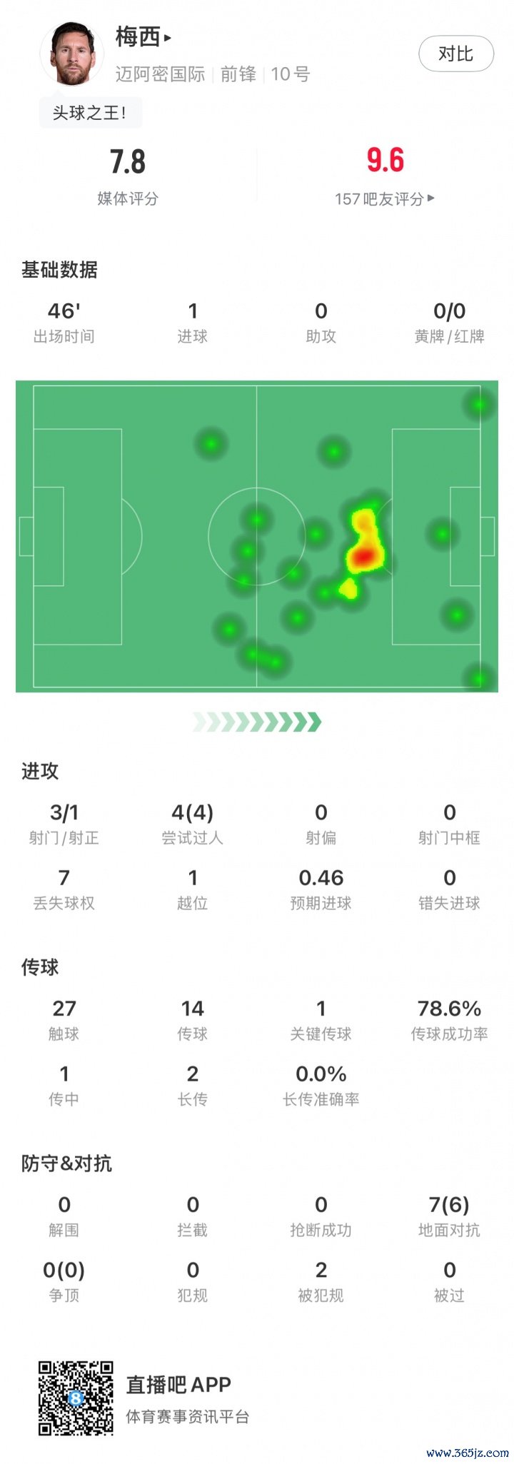 10月25日讯 美职联季后赛首场,梅西上半场破门,希望体育之光直播吧迈阿密1-0领跑 纳什维尔。