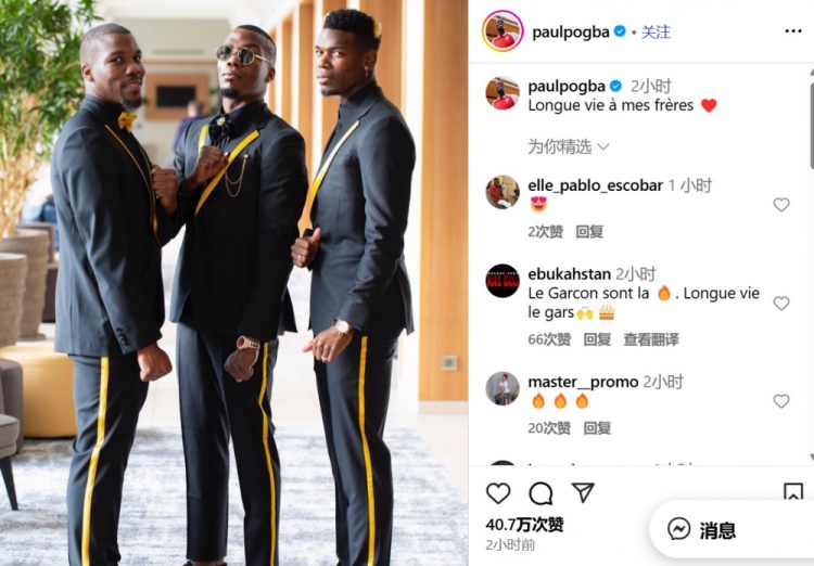 博格巴写道:“愿我的哥哥们长命百岁。”