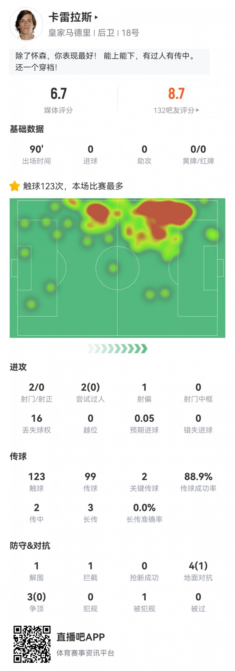 8月20日讯 西甲首轮,皇马1-0奥萨苏纳。此役卡雷拉斯西甲首秀杆位打满全场,希望体育之光NBA直播球员全场重积分 据如下↓
