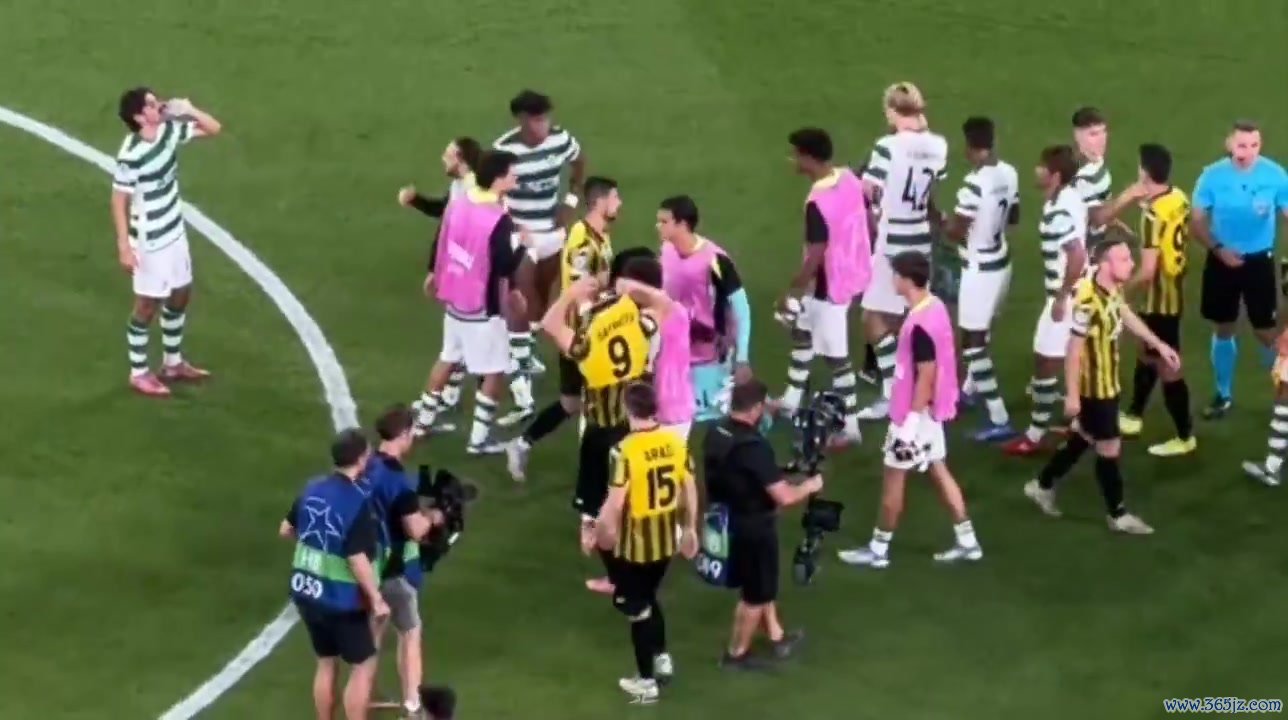 9月20日讯 在本轮欧冠职业联赛 中,葡体4-1击败阿拉木图凯拉特,将在明年加盟切尔西的昆达和萨特帕耶夫在赛后进行了问候。