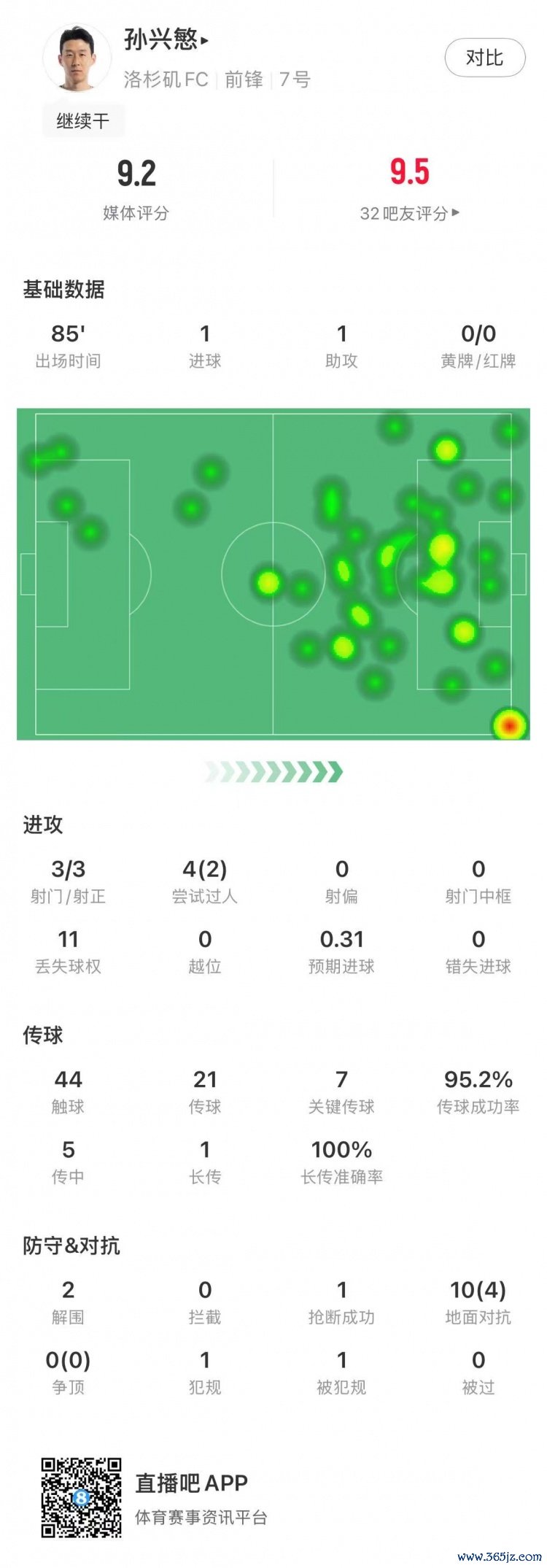 孙兴慜本场赛事 数据: