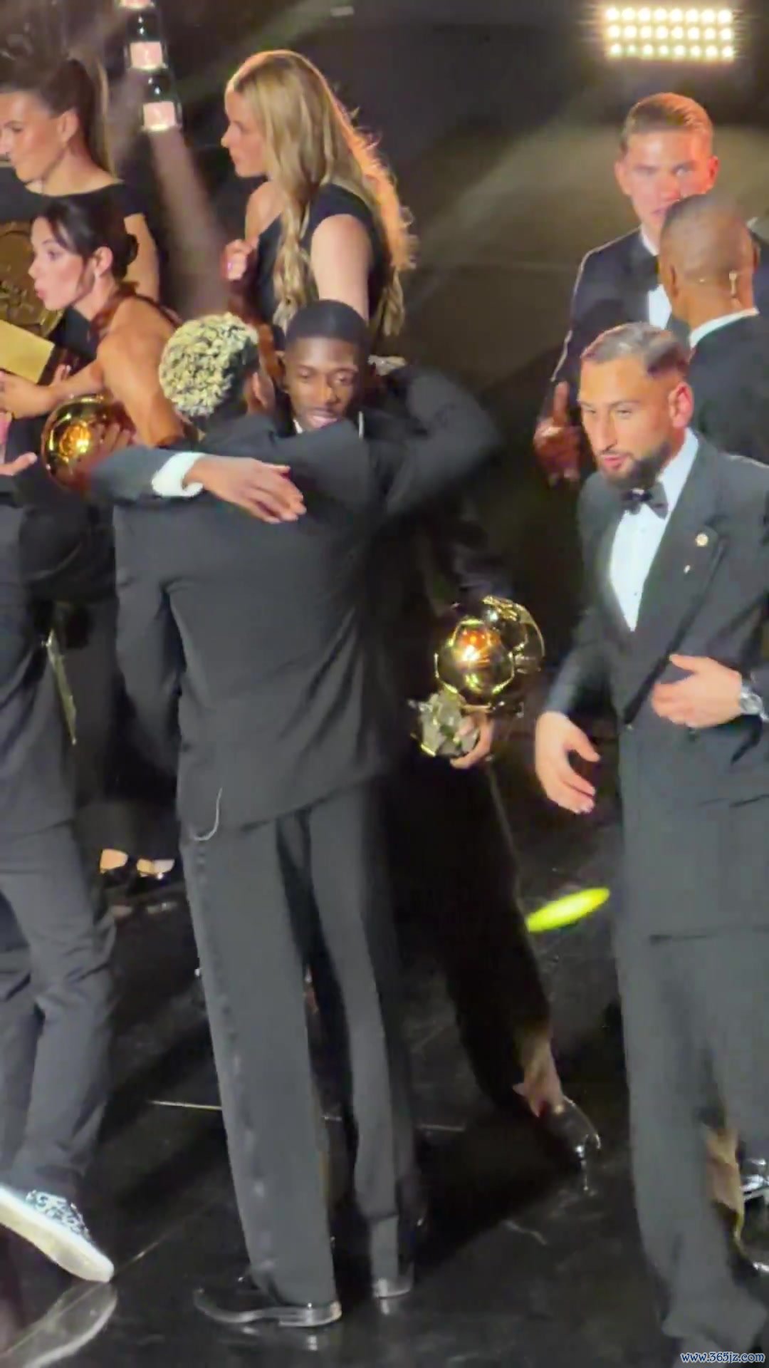 09月23日讯 2025年金球奖,登贝莱加冕荣誉。现场仪式结束后, 乒乓球资讯亚马尔等待在一旁, 巴塞罗那NBA直播祝贺并拥抱了登贝莱。