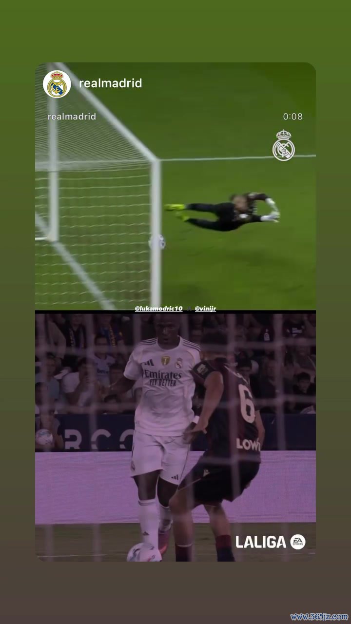 莫德里奇更新社媒动态意甲联赛积分榜, 巴塞罗那晒出自己与维尼修斯外脚背射球 的对比视频。