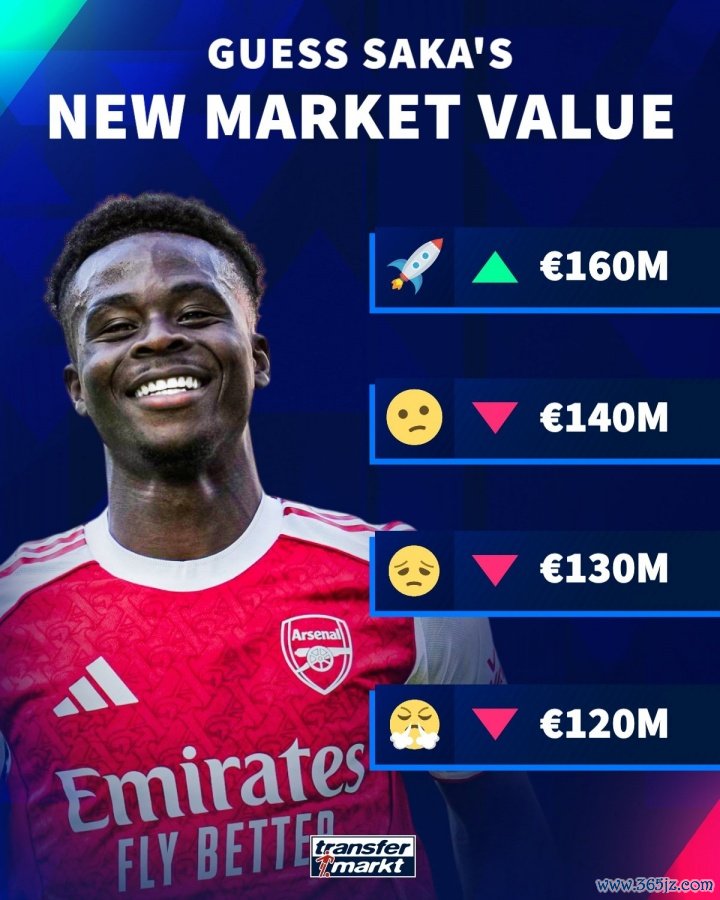 10月15日讯 德国古代足球 转会市场将在10月17日更新英超球员身价,目前德转已经陆续放出了一批球员的身价变动进行预热,希望体育之光阿森纳前场球员萨卡位列其中。