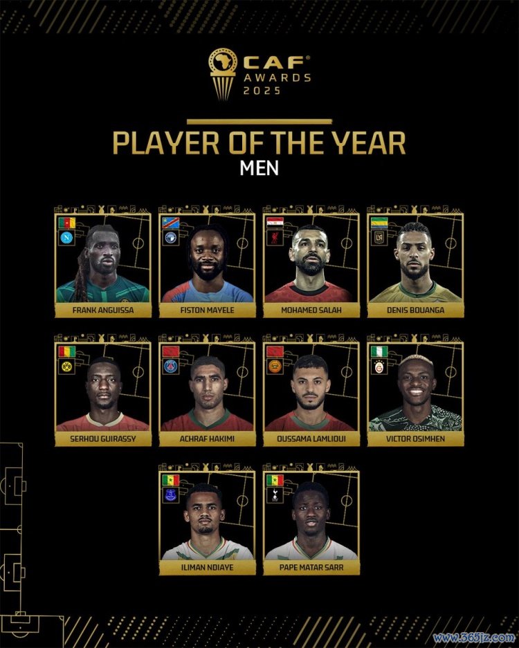 10月22日讯 非洲古代足球 联合会(CAF)公布2025年度最佳球员候选, 巴塞罗那英超直播萨拉赫、奥斯梅恩、吉拉西、阿什拉夫等10名球员获提名。