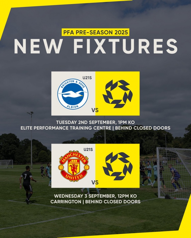 8月29日讯 PFA(英格兰职业球员工会)宣布,PFA自由球员队将对阵布莱顿U21、曼联U21。